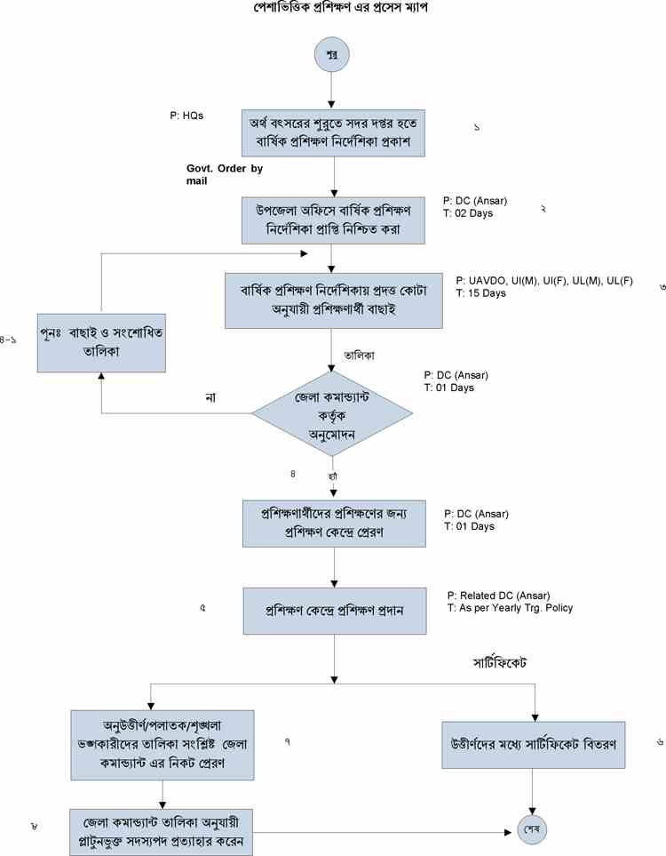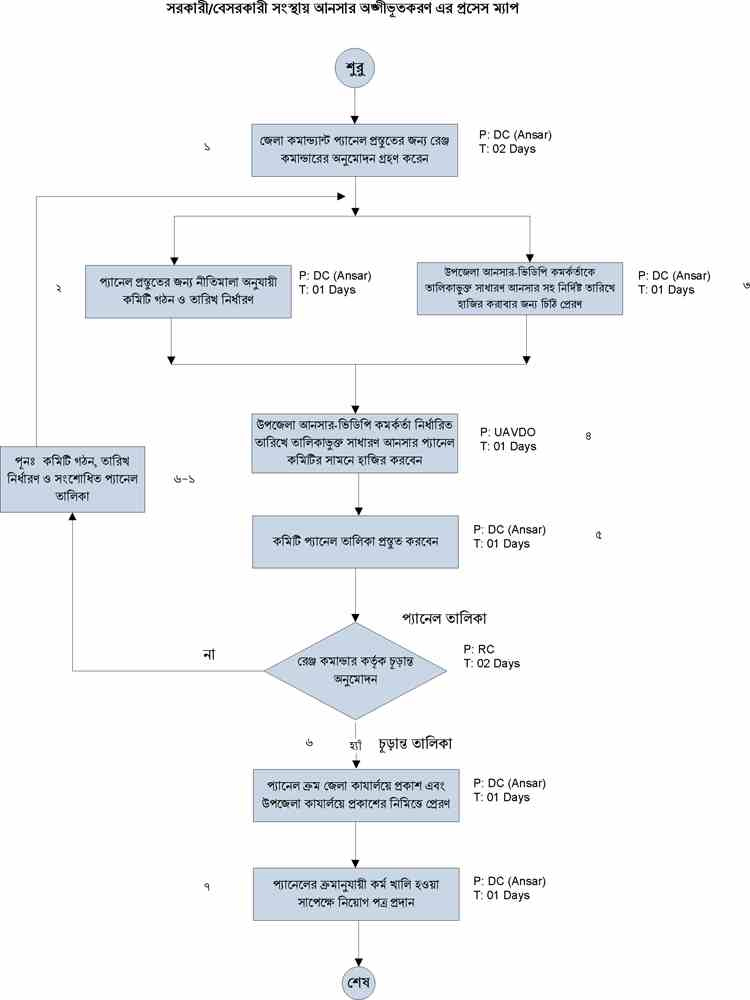 | ৭ | সরকারি/বেসরকারি সংস্থায় আনসার অংগীভূতকরন এর প্রসেস ম্যাপ | দেখুন |